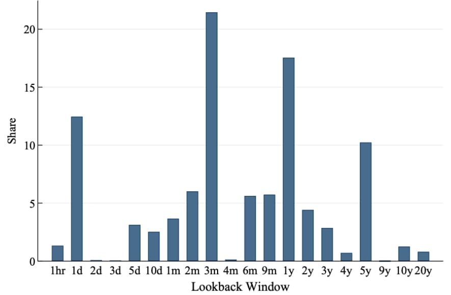 But when researchers tracked which charts they actually looked at—filtering out default views to see what lookback periods investors deliberately chose—the winner was three months.