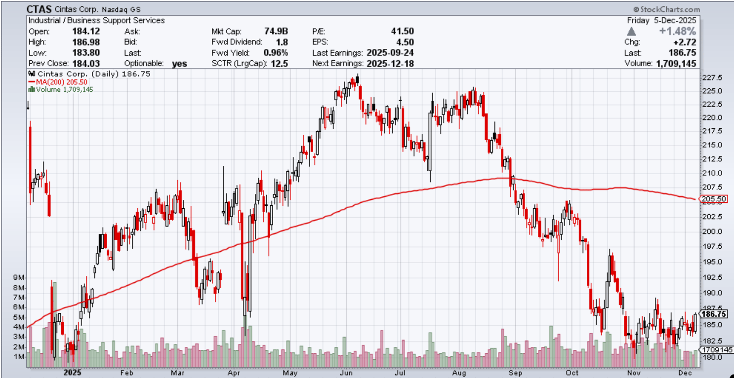 First Aid and Safety grew 14.4%. Their $5.3B acquisition bid for UniFirst fell apart back in March, removing that catalyst, but the core playbook remains intact. Next earnings drop December 18.