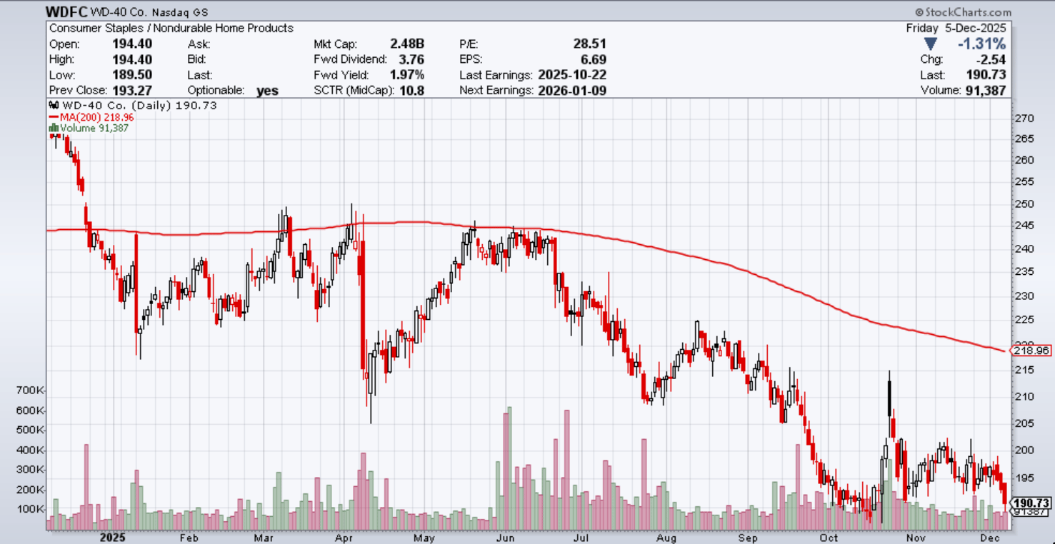 They sell WD-40. That's basically it. One product, recognized in 176 countries, generating $620M in annual revenue with 55% gross margins. Everyone knows the blue and yellow can. No one's switching to a competitor. This is about as simple and durable as a business gets.