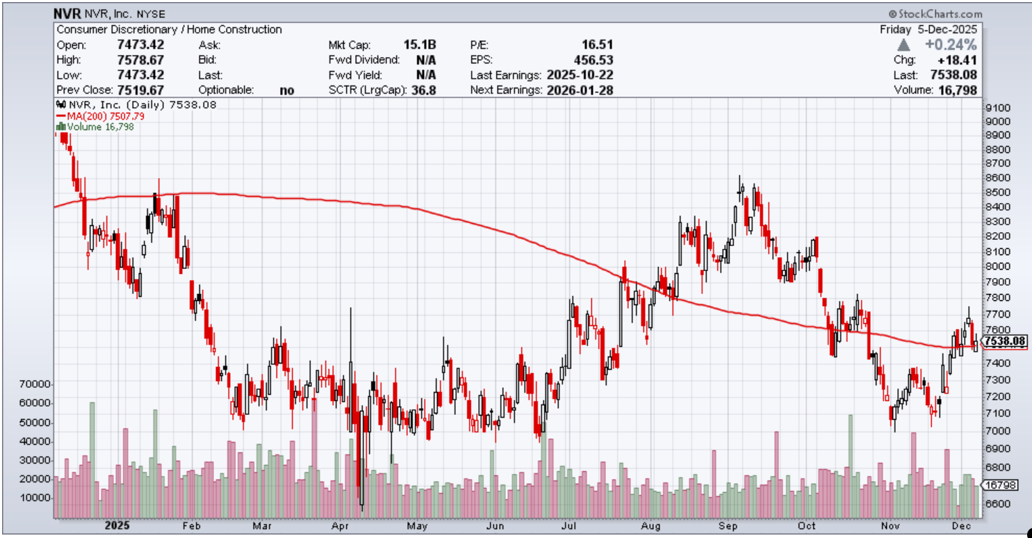 Silver lining: mortgage rates have cooled to the 6.1-6.3% range, which should help affordability. NVR is still sitting on ~$2.2B in cash with minimal debt and authorized a $750M buyback in August.