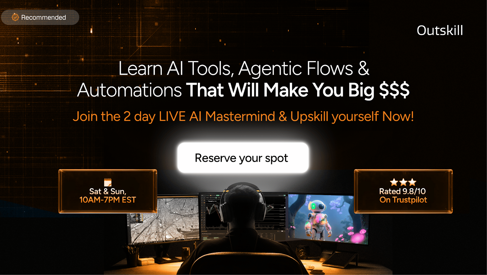 Outskill is running a live 2-day AI workshop this Saturday and Sunday (10 AM to 7 PM EST). Normally $395. Free for the first 100 signups.