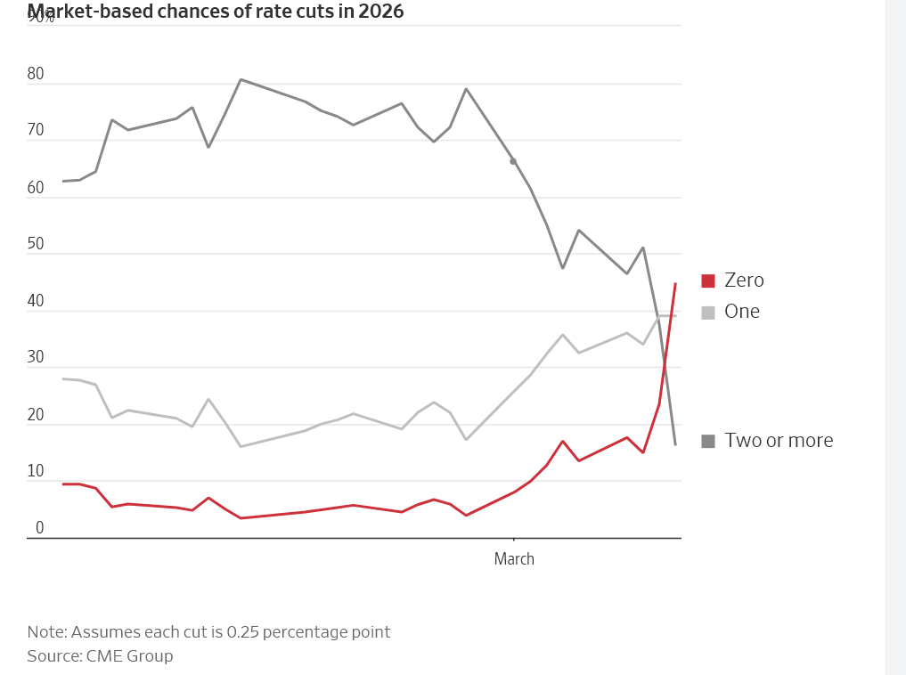 Goldman pushed its first rate cut call to September from June. Markets are pricing in no cuts until late 2027 at the earliest. Next week's meeting will be a hold.