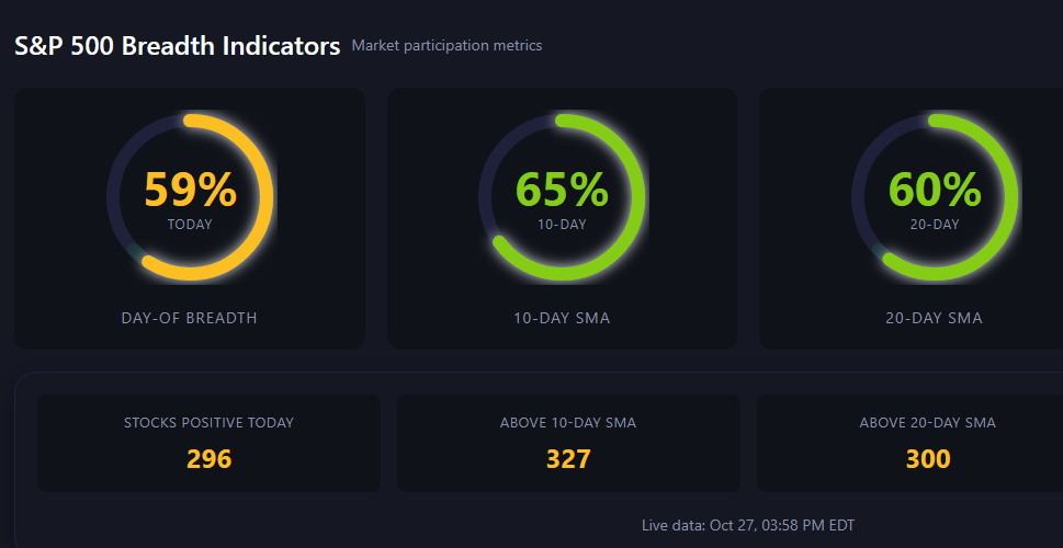 Breadth elevated and consolidated for a week straight - longest run since early May. Setting up for a rubber band move off Thursday's China meeting.