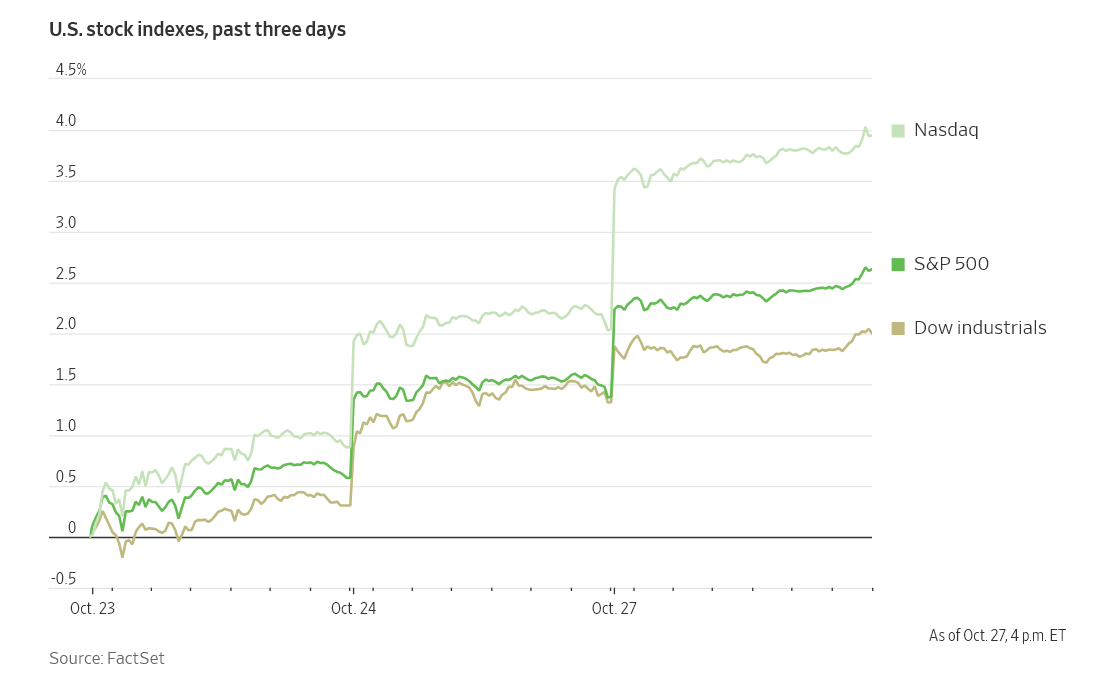 Both countries are saying a trade agreement is near after talks wrapped up over the weekend. Formal announcement expected Thursday when Trump and Xi meet. The deal shelves the threat of additional U.S. tariffs, and China agrees to delay its rare earth export controls. Market is betting this actually happens.