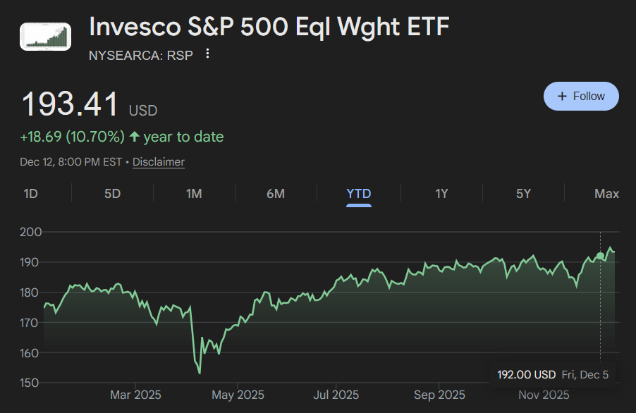 Movie #2: The equal-weight S&P 500 gives every company one vote. It's closer to "how are the average stocks doing?"
